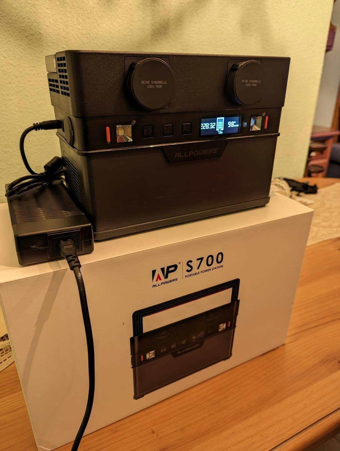 Портативна енергетична станція S700 має 2 виходи змінного струму з чистою синусоїдою (110 В 700 Вт, пікова потужність 1400 Вт), 3 порти USB-A, 1 порт USB-C PD 100 Вт, 1 регульований автомобільний порт і 2 порти постійного струму. Підключення через Bluetooth без інтернету, застосунок ALLPOWERS робить експлуатацію легкою та стабільною. Дозволяє дистанційне керування через мобільний телефон у будь-який час і в будь-якому місці. Він є запасним джерелом живлення для ваших пригод на відкритому повітрі, кемпінгу, автомобільних поїздок, кемперів та домашнього використання.