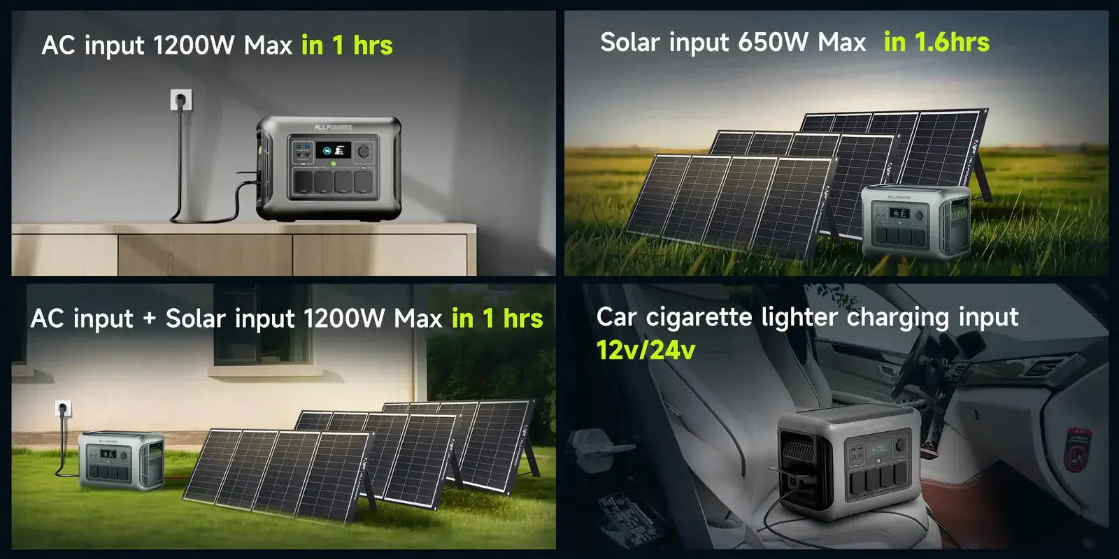 • 4 способи заряджання (AC/Сонце/Авто/Подвійний AC + Сонце);