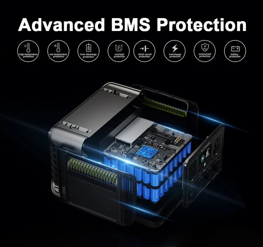 ALLPOWERS R2500 використовує BMS з продуктивністю, що перевищує продуктивність звичайних портативних джерел живлення, для належного управління захистом від високої температури, захистом від перенапруги, захистом від низької напруги, захистом від низької температури розряджання, захистом від надструму, захистом від перевантаження, захистом від короткого замикання, захистом від перенапруги навантаження тощо, щоб гарантувати безпеку користувача.