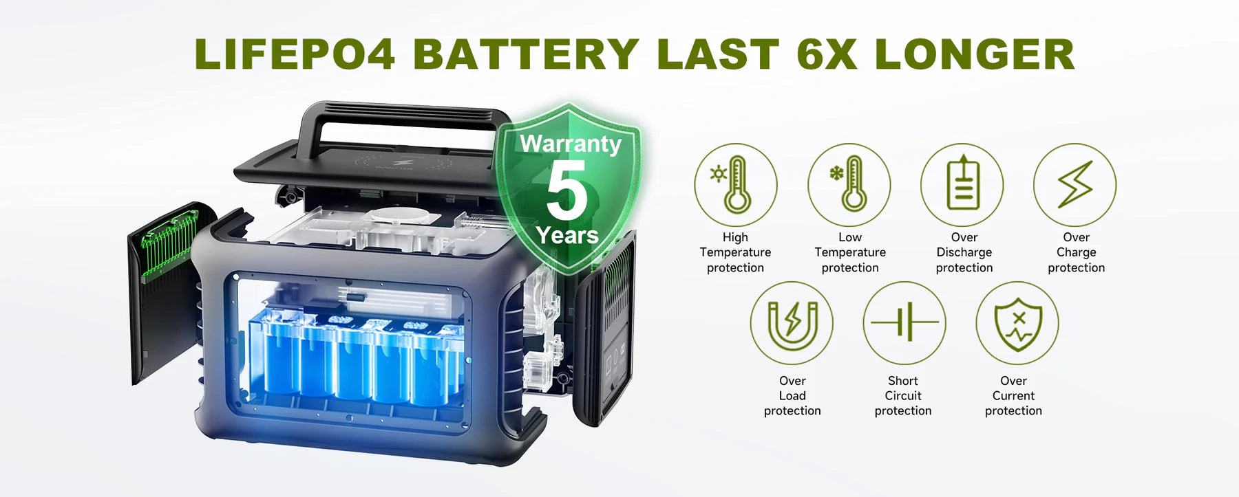 Оснащений батареями LFP, R600 можна використовувати та заряджати понад 3500 разів, перш ніж він досягне 80% ємності. Це еквівалентно майже 10 рокам регулярного використання. Портативний генератор R600 оснащений вдосконаленою системою захисту BMS, яка контролює напругу, струм і температуру, щоб забезпечити безперебійну роботу батареї LFP протягом багатьох років.