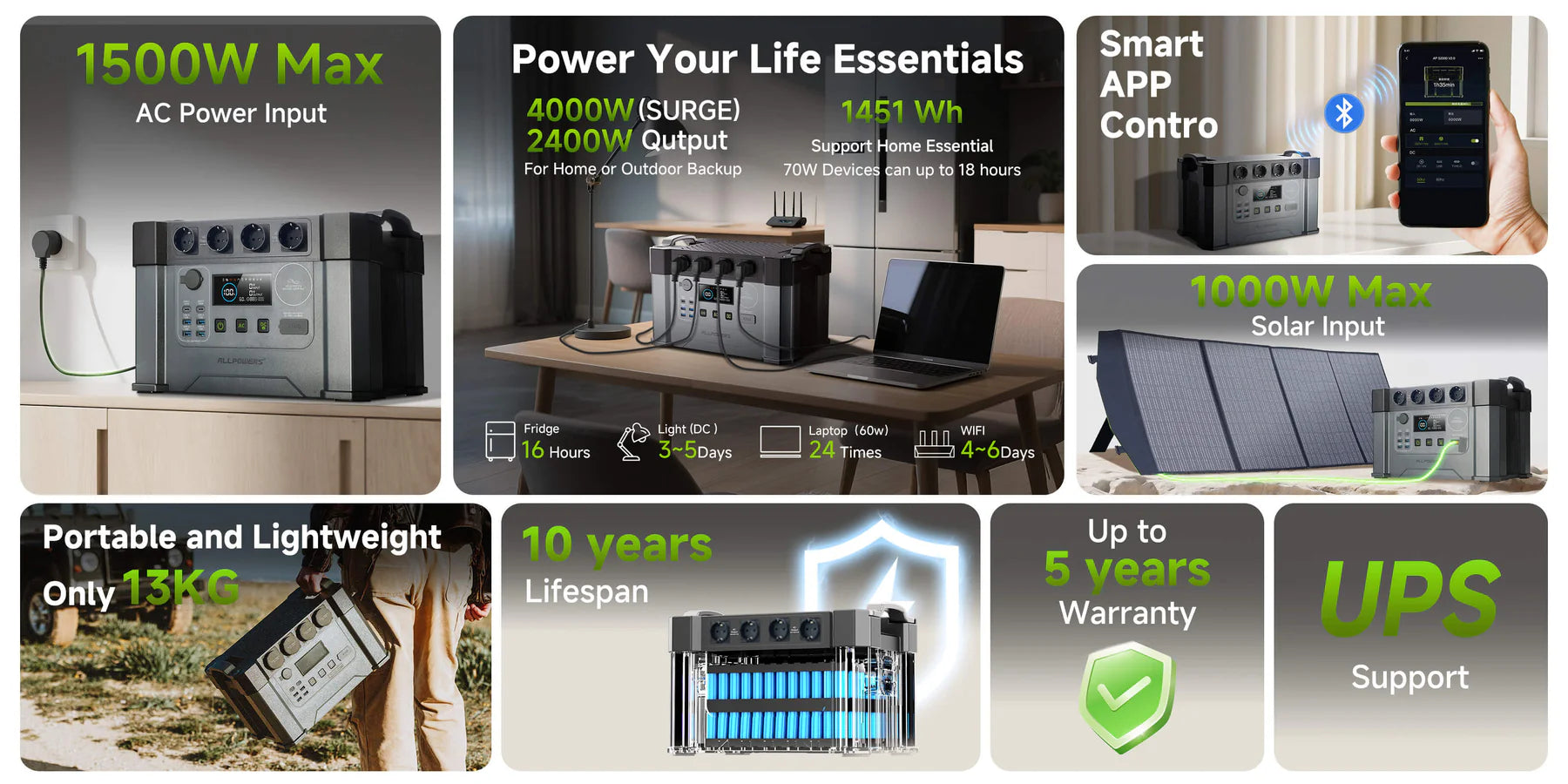ALLPOWERS S2000 Pro Портативна зарядна станція 2400W 1451Wh