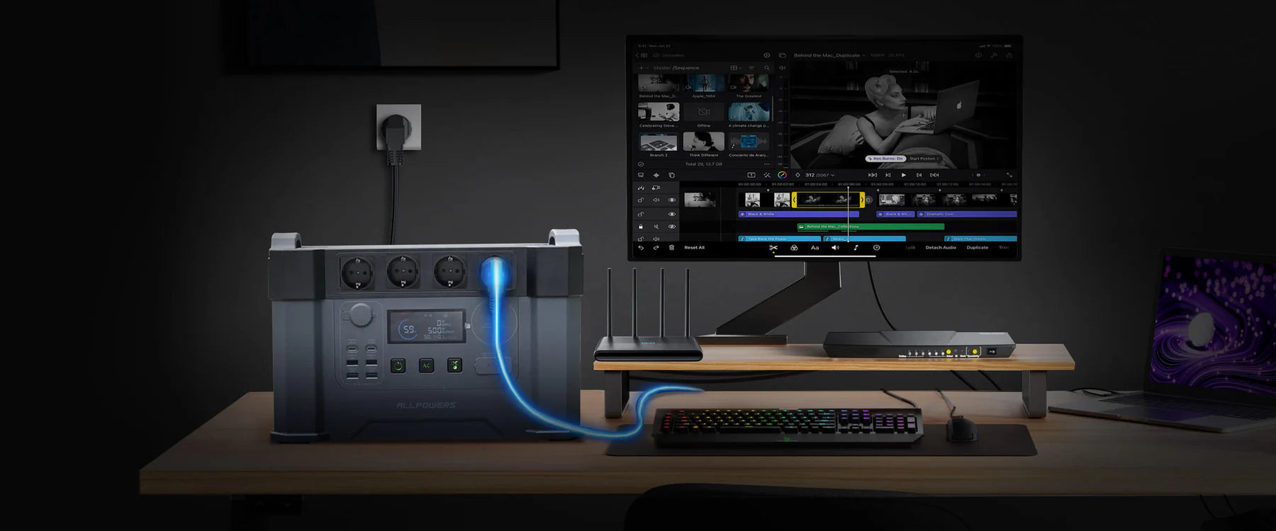 З S2000 Pro ви завжди будете готові до будь-яких перебоїв у електропостачанні. Це найкраще джерело резервного живлення на випадок відключення електроенергії. Воно працює безшумно і не потребує технічного обслуговування. Нарешті, воно може забезпечити достатньо енергії для живлення ваших основних побутових приладів, таких як холодильник, кавоварка, електричний гриль, електропила тощо.