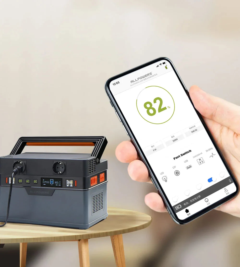 Портативна енергетична станція S700 має 2 виходи змінного струму з чистою синусоїдою (110 В 700 Вт, пікова потужність 1400 Вт), 3 порти USB-A, 1 порт USB-C PD 100 Вт, 1 регульований автомобільний порт і 2 порти постійного струму. Підключення через Bluetooth без інтернету, застосунок ALLPOWERS робить експлуатацію легкою та стабільною. Дозволяє дистанційне керування через мобільний телефон у будь-який час і в будь-якому місці. Він є запасним джерелом живлення для ваших пригод на відкритому повітрі, кемпінгу, автомобільних поїздок, кемперів та домашнього використання.