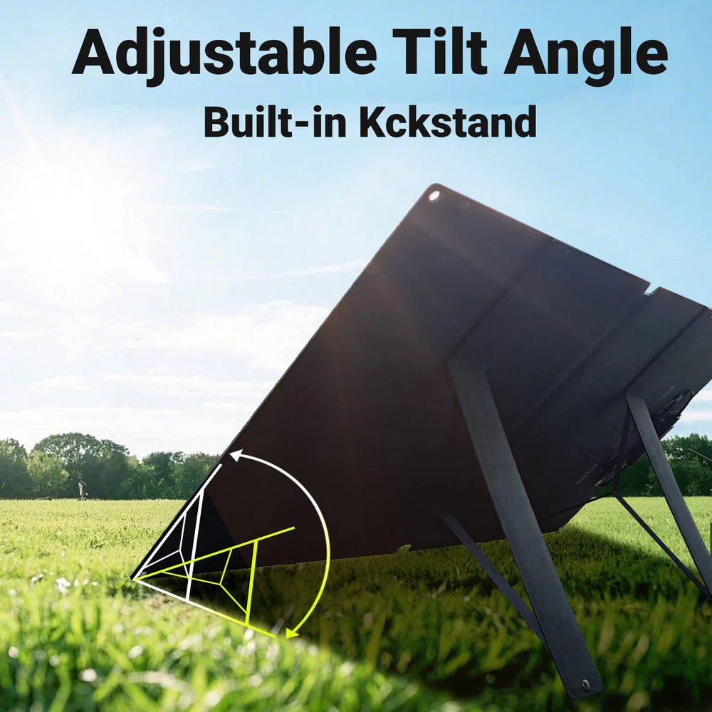 Задня підставка має гнучку функцію регулювання. Ви можете регулювати кут сонячної панелі залежно від погоди та кута сонячного світла, щоб максимізувати коефіцієнт фотоелектричного перетворення. Також сонячну панель не можна згинати або сильно ударяти. Будь ласка, використовуйте її обережно, щоб запобігти пошкодженню інкапсуляційного шару ETFE гострими предметами та зменшенню пропускання світла.