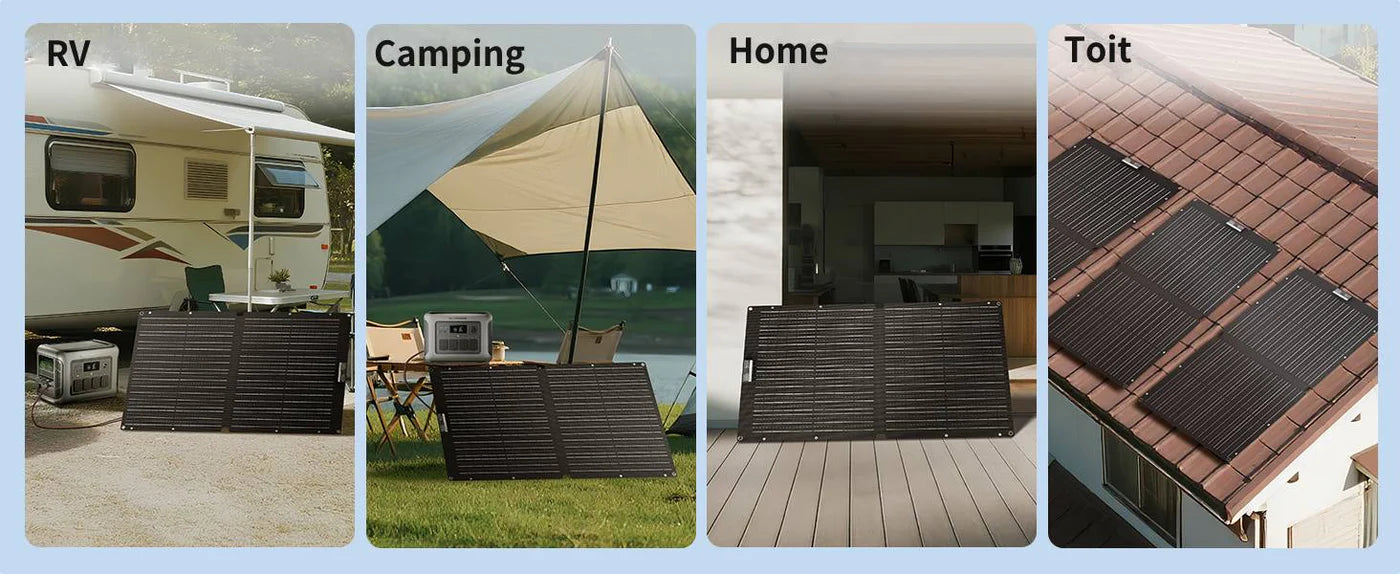 Він використовує інтегровану технологію ламінування для складання кількох сонячних модулів разом, створюючи міцніший та ефективніший пристрій для генерації сонячної енергії. У складеному вигляді його легко переносити, а в розкладеному вигляді він може поглинати сонячну енергію, ефективно генерувати електроенергію та заряджати електроприлади.